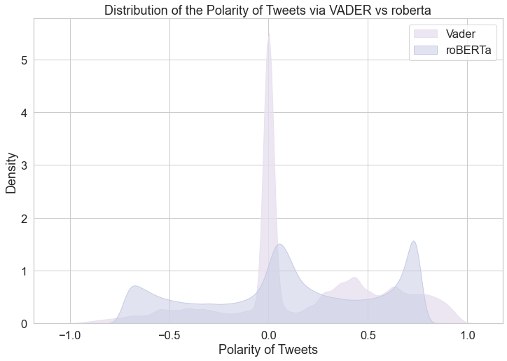 - Comparison of VADER and roBERTa